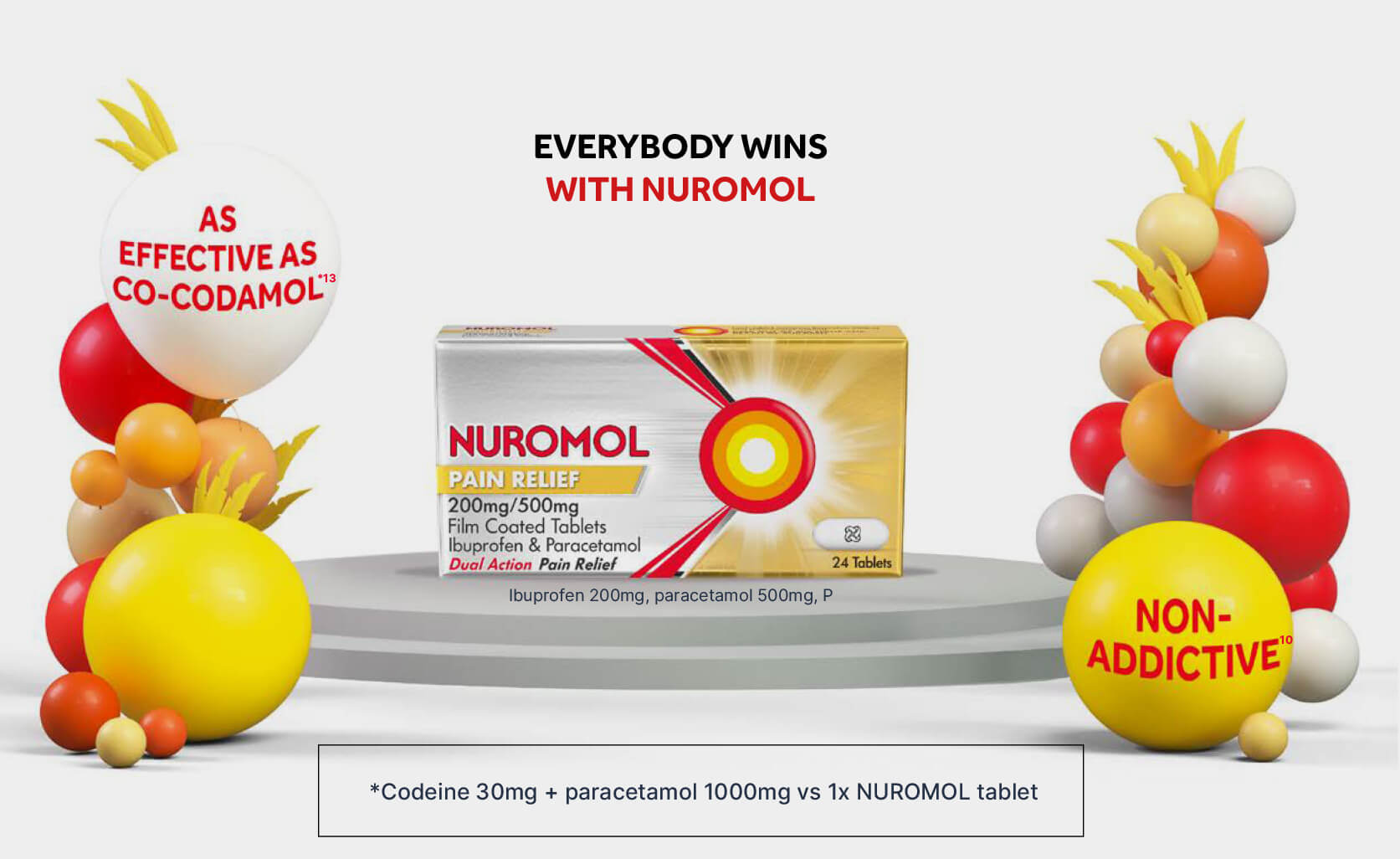More than six tablets of Nuromol Pain Relief (3000mg Paracetamol, 1200mg Ibuprofen) should not be taken in any 24-hour period.