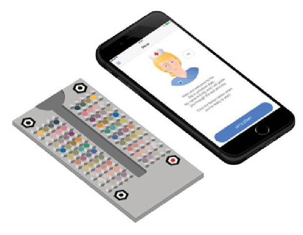 The test, developed by Healthy.io, combines the standard dipstick urine test with a smartphone app. A “virtual nurse” talks users through urine collection and testing. The strip is dipped into a mid-stream urine sample then placed on the proprietary colour board and scanned with a mobile phone.