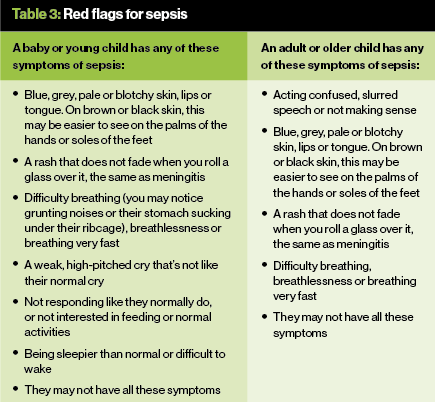 The NHS Health A-Z lists the following symptoms as red flags for sore throat. Patients (including children) should call 999 or go straight to A&E, if they are: